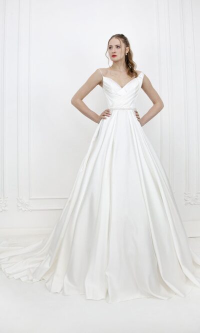 Svatební šaty bez ramínek se k nám postupně vracejí. Na chvíli totiž z módy zmizely ale pomalu a jistě jsou zpátky. Důvod toho, proč je návrháři dali na chvilku zpátky do skříně je ten, že mnoho nevěst se obávalo, že svatební šaty bez ramínek budou padat a budou tak nevěstu zlobit při tancování. Náš svatební salon Praha však vypracoval perfektní střih svatebních šatů bez ramínek díky kterým budou šaty vždy na svém místě a Vy si můžete být jistá, že Vás určitě nebudou zlobit. Kromě perfektně vypracovaného střihu používá náš svatební salon v Praze také kostice které pomohou šatům držet svůj tvar a být správně zafixované na té úrovni, na které mají být. Můžete si tak být jistá, že Vaše svatební šaty Vám nebudou sklouzávat. Konkrétně svatební šaty které Vám představujeme mají velmi krásný sexy dekolt do tvaru srdíčka který jim dodává velmi sexy a ženský vzhled. Celý tento model je vyšitý luxusní krajkou sněhově bílé barvy. Tato krajka má na sobě velmi krásné květiny které jsme mimochodem doplnili také korálky. Díky těmto korálkům se tyto svatební šaty lesknou a my tak můžeme hrdě říct, že se jedná o princeznovské svatební šaty Praha. Aby tyto svatební šaty skvěle drželi a nezlobili Vás, v zídu se zapínají na šněrovačku díky které tyto šaty skvěle stáhněte aby neklouzaly. V neposlední řadě podotkneme také to, že jsme zvolili pro tyto svatební šaty krásnou tradiční bílou barvu jelikož jsme chtěli, aby tyto svatební šaty vypadaly opravdu velmi klasický a tradičně přesně tak, jako kdyby byly z filmu. Tento tvar do V vám také siluetu opticky prodlouží. Ano jak jste si již určitě všimla, u těchto svatebních šatů jsme udělali vše proto, aby jste se v nich cítila jako královna a šaty Vás dělali ještě krásnější. Budete opravdu nádherná nevěsta.