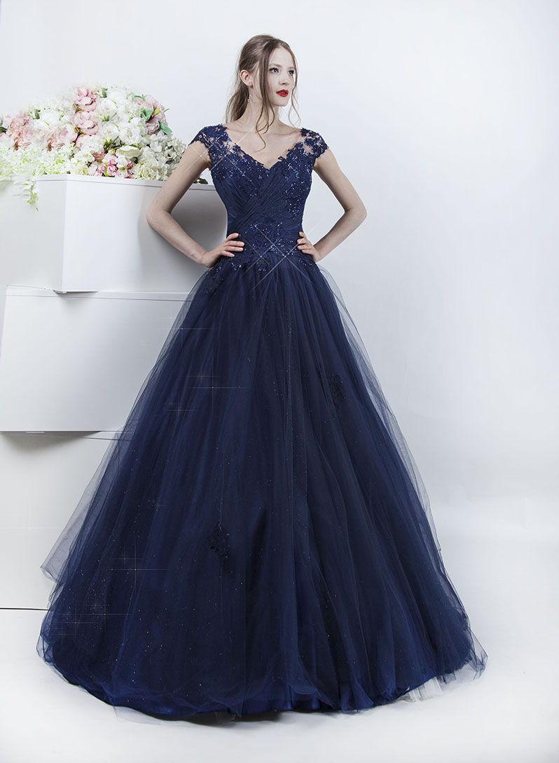 Mnoho žen touží po tom, stát se v jejich životě aspoň na jeden den opravdovou večernicí. Tento velmi mystický, záhadný a sexy obraz totiž vyvolává pevný adrenalin. V našich šatech barvy večernice se budete cítit ne jenom neodolatelně sexy, ale také velmi žensky a elegantně. Jedná se o tmavě modrou barvu která vypadá jako noc. Díky tomu, že se jedná o tmavý odstín barvy Vám budou takové to mystické společenské šaty Praha tvarovat opticky postavu a Vaše tělo tak bude vizuálně vypadat štíhleji. V neposlední řadě je také nutné podotknout, že plesové šaty barvy večernice vypadají také vždy velmi luxusně. Náš salon Praha používá materiály jen té nejlepší kvality a my Vám tak ručíme, že plesové šaty na maturitní ples které si v našem salonu vyberete budou vypadat velmi draze a luxusně a Vy se tak budete cítiti jako opravdová mystická královna. Uvidíte, že určitě jako maturantka nenecháte žádného hosta lhostejným a budete naproso nezapomenutelná. Krásné společenské šaty které Vám zrovna představujeme jsou v první řadě velmi luxusní tím, že jejich živůtek je proracovaný ne jenom krásným drapováním, ale také i sofistikovanou výšivkou. V prvné řadě, drapování dodává těmto společenským šatům na maturitní ples velmi zajimavou dynamiku a opticky také vylepší Vaše tělo. Dále i krásná výšivka dodá Vašim plesovým šatům velkou eleganci a šik. Tyto maturitní šaty tak dodají maturantce která je vynese v den svého maturitního plesu velký francouzský šik a pořádný francouzský šarm kterým okouzlí všechny hosté maturitního plesu. Vy budete prostě neuvěřitelně zářit a budete se cítit opravdu skvěle.